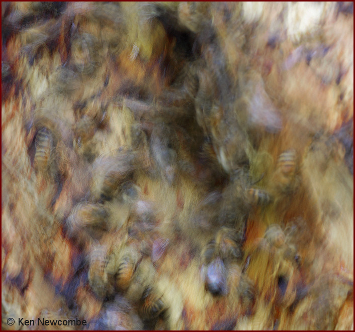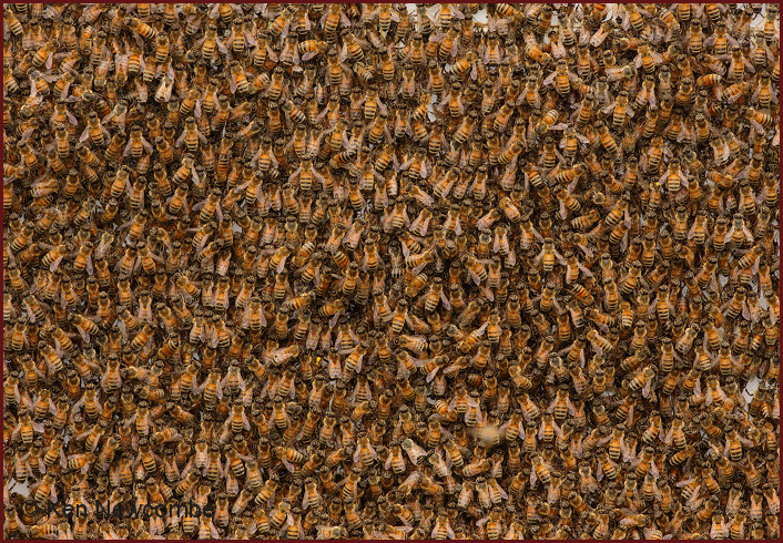 Wild Bee hive - Foreground drone, background worker bee